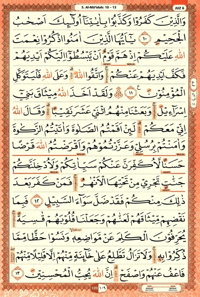 Jika kita kembali pada bacaan tadarus di Al-Qur’an Mushaf Utsmani halaman 109, tepatnya pada Al-Ma’idah ayat 11, dapat diperoleh tiga titik bacaan gunnah: