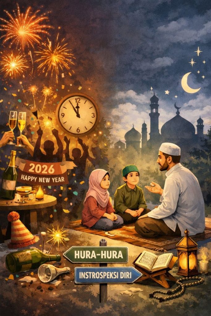 Bahkan syariat membatasi perayaan Tahun Baru Islam agar tidak berlebihan, seharusnya Tahun Baru Masehi tidak lebih dirayakan daripada itu.