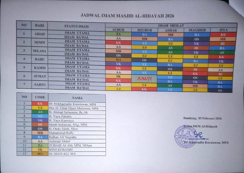 Daftar Jadwal Masjid Al-Hidayah